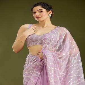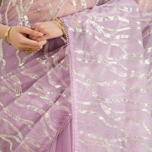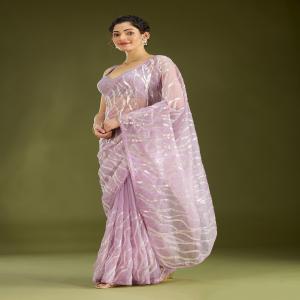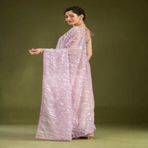 Baby Pink Saree in Tissue fabric. The Saree is elevated with Cutdana embroidery. It comes with an Unstitched blouse. Comes with the Koskii promise of premium quality.
