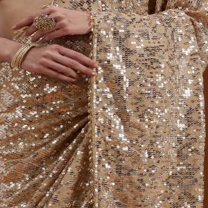 Beige Sequins Net Saree