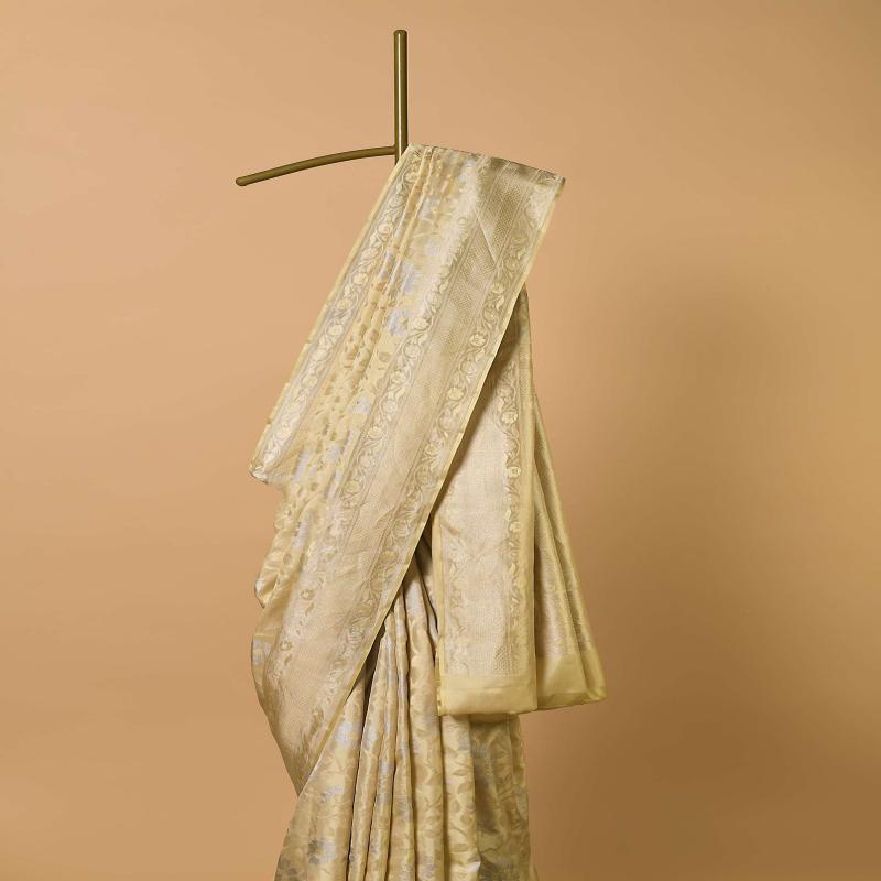 Opt for this classic silk saree to take you stylishly through year round weddings and celebrations. Fashioned in an earthy beige hue, it is made from high quality south dharmavaram silk fabric. Beautified with all-over antique zari weaved motifs, this opulent drape comes with an unstitched blouse piece. Awarded As The Most Trusted Brand We'Re Delivering Styles You Love Just As Promised.