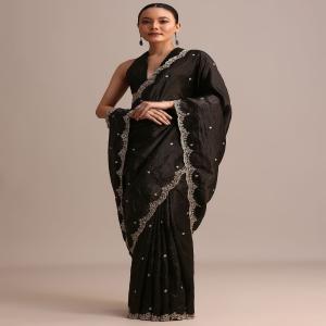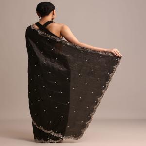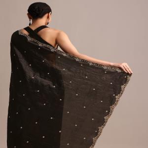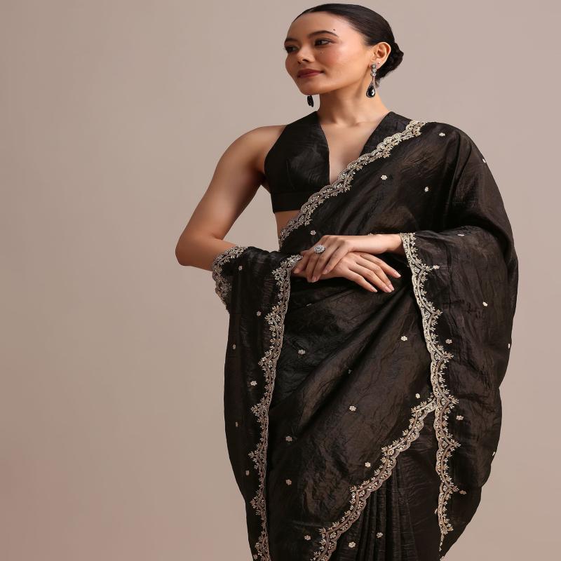 Make a statement in our black saree, crafted with a glittering sequin and cutdana embroidered border. The luxurious tissue fabric drapes beautifully, creating a flattering and elegant look. Ideal for weddings, receptions, and festive events. This saree comes with an unstitched blouse. Awarded as the Most Trusted Brand, we're delivering styles you love
