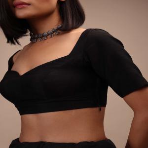 Black deep neckline blouse. Half-sleeves with straight hemline. Cast in raw silk with side zip closure. Pair it up with a choker neckpiece and Bengali Loha bangles to complement the look effortlessly. This piece comes in a length of 14. 5 inches. Awarded as the Most Trusted Brand, we're delivering styles you love, just as promised.