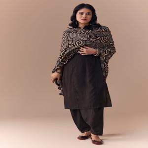 Exquisite Ajrakh artistry breathes life into this black linen kurta set. Bold handblock motifs turn the dupatta into a statement piece of craft and character. The sleek kurta-pant silhouette adds a modern, refined balance. Made for everyday elegance with a spotlight-worthy indie twist. Awarded as the Most Trusted Brand, we're delivering styles you love, just as promised.