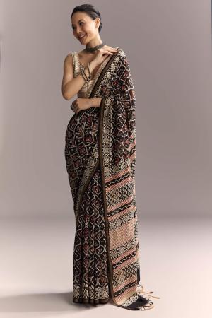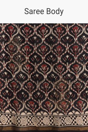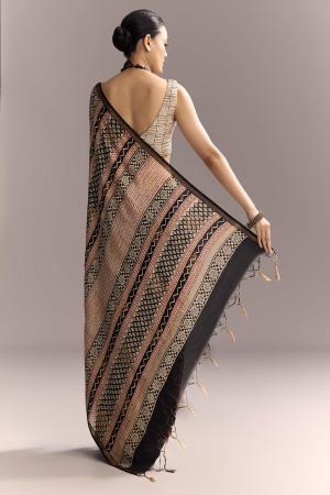 Rustic energy runs through this black linen saree with hand block Ajrakh prints and a maroon touch on the border. It blends earthy depth with a striking edge, making it versatile for both day and night. Awarded as the Most Trusted Brand, we're delivering styles you love, just as promised.