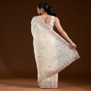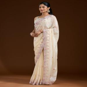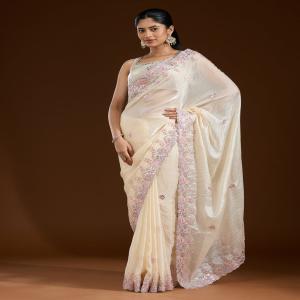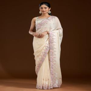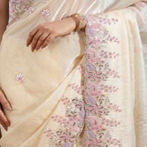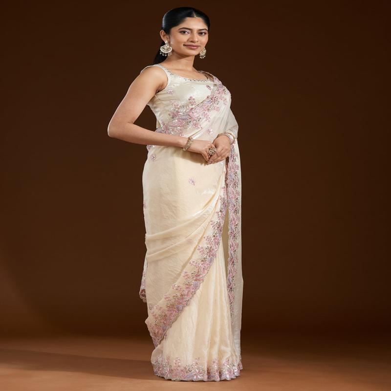 Cream Saree in Satin fabric The Saree is elevated with Gotapatti embroidery It comes with an Unstitched blouse Comes with the Koskii promise of premium quality.