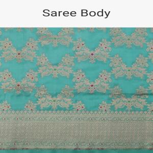 Firozi Blue Handloom Banarasi Saree In Uppada Silk With Gold Woven Meenakari Buttis And Unstitched Blouse