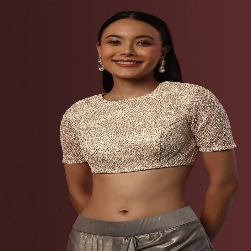 The blouse is crafted on sequence fabric and adorned with round neckline and half sleeves. Along with tassel dori at the waist and back hook closure. Awarded as the Most Trusted Brand, we're delivering styles you love, just as promised.
