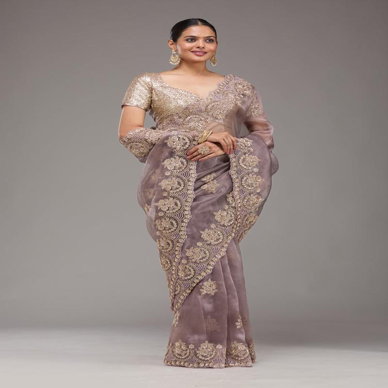 Lavender Saree in Tissue fabric. The Saree is elevated with Prints . It comes with an Unstitched blouse. Comes with the Koskii promise of premium quality.