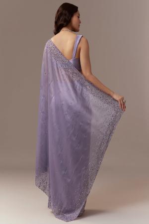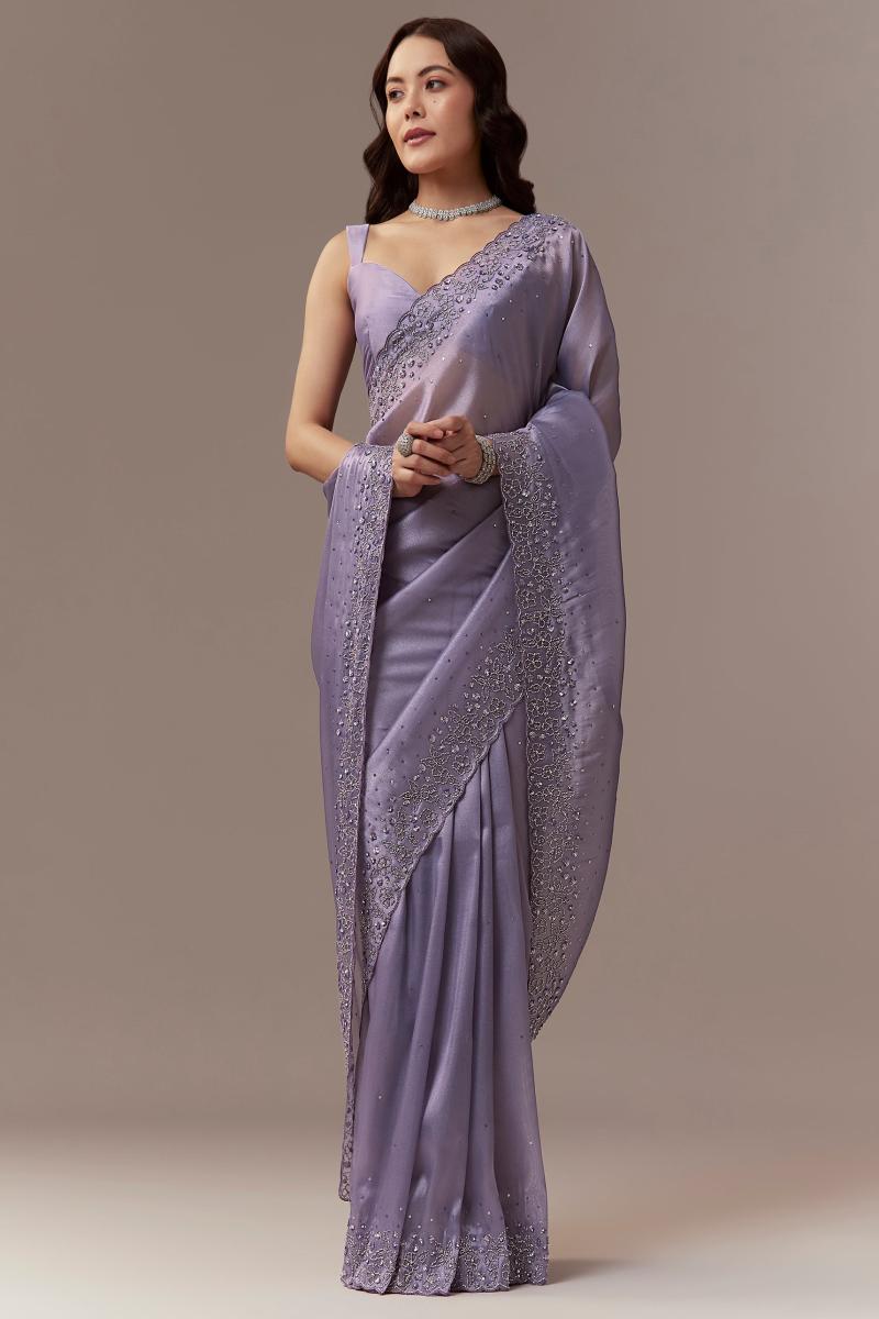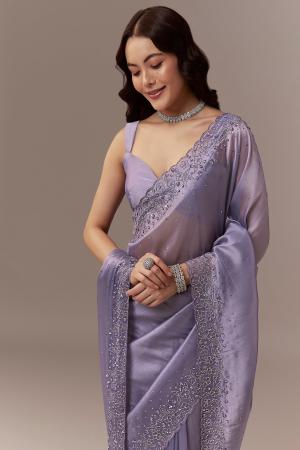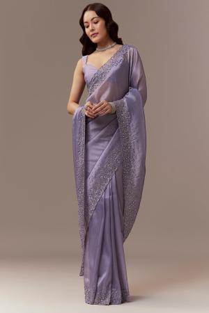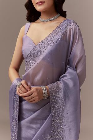 Lavender Tissue Saree With Cutdana And Sequin Embroidery