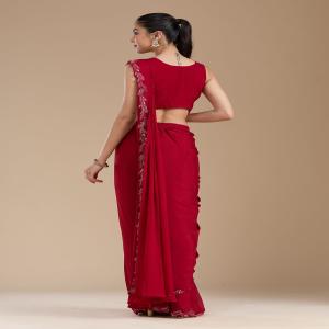 Maroon Saree in Satin fabric. The Saree is elevated with Sequins embroidery. It comes with an Unstitched blouse. Comes with the Koskii promise of premium quality.