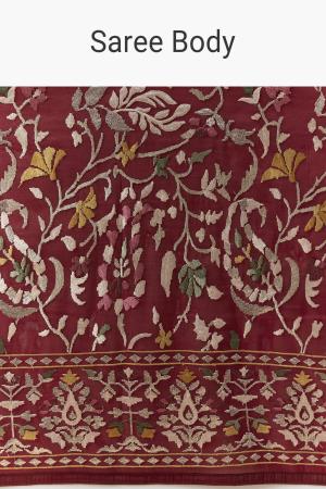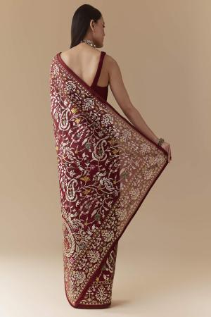 Maroon Tissue Organza Resham Work Saree with Unstitched Blouse