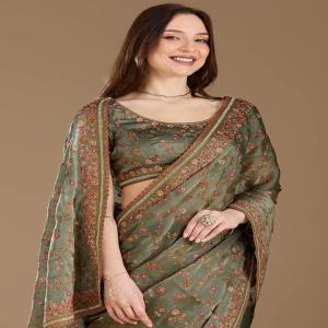 Rani Pink Saree in Tissue fabric. The Saree is elevated with Stonework (Gold) embroidery. It comes with an Unstitched blouse. Comes with the Koskii promise of premium quality.