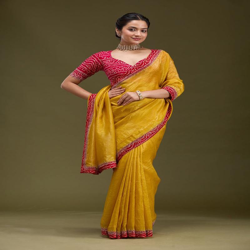 Mustard Threadwork Tissue Saree