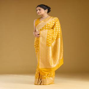 Mustard Silk_Saree in Silk fabric. The Silk_Saree is elevated with Zariwork (Gold) embroidery. It comes with an Unstitched blouse. Comes with the Koskii promise of premium quality.