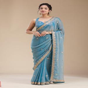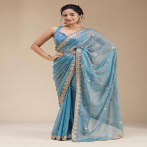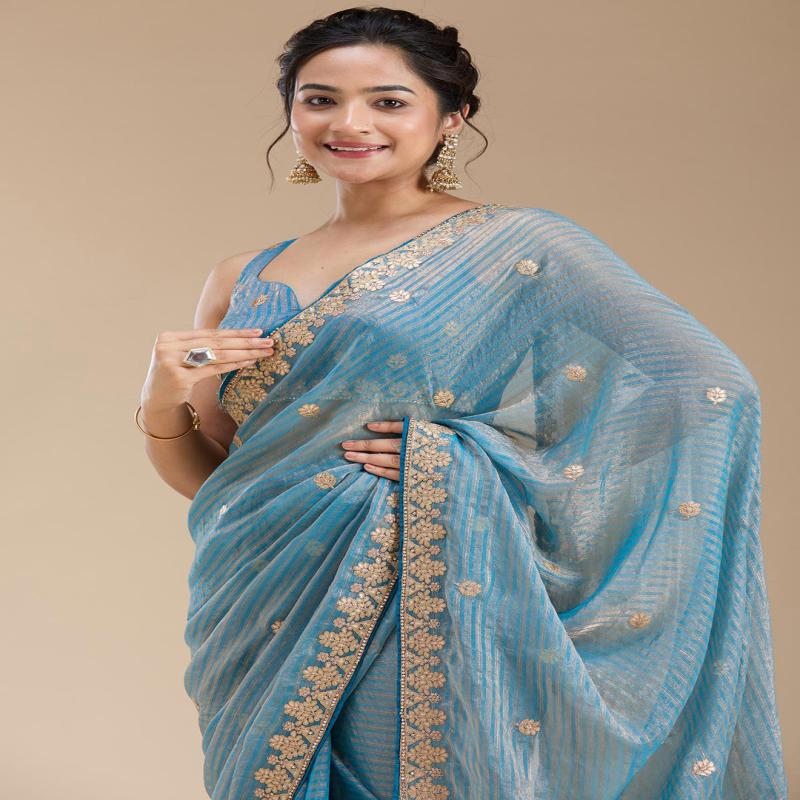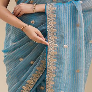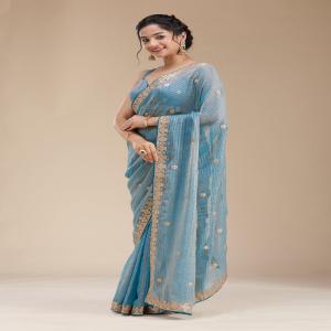 Blue Saree in Chiffon fabric. The Saree is elevated with Gotapatti embroidery. It comes with an Unstitched blouse. Comes with the Koskii promise of premium quality.