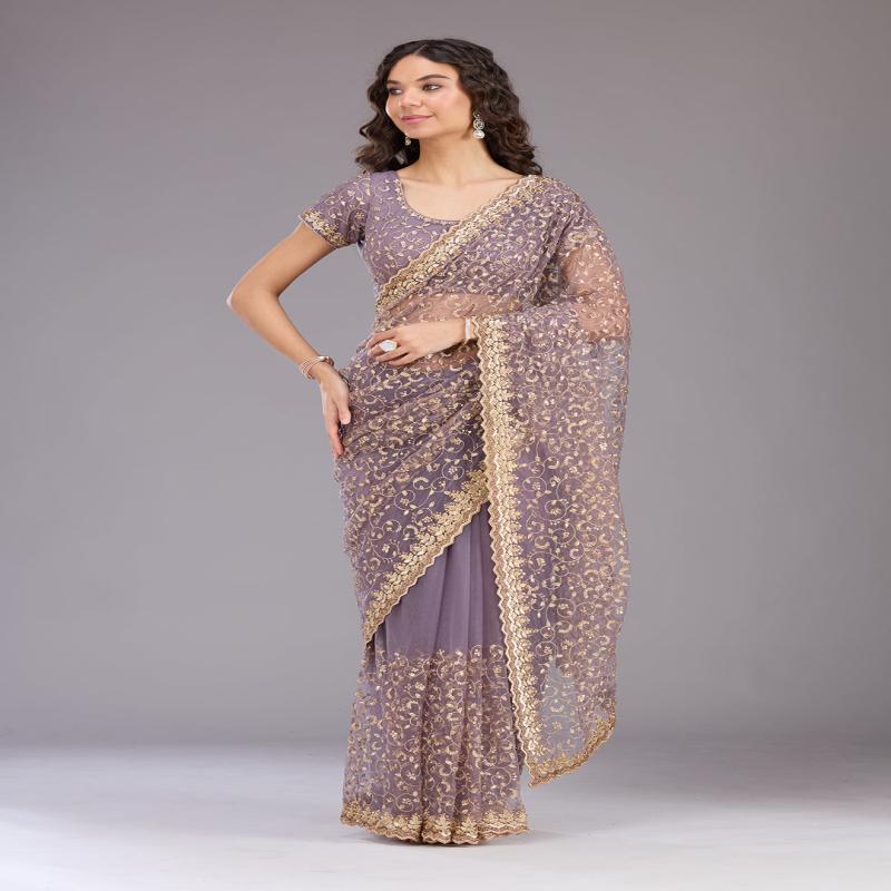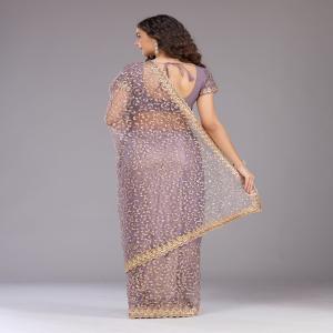 Mauve Work Semi Crepe Designer Saree