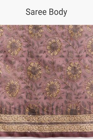 Onion Pink Linen Printed Saree With Traditional Ajrakh Print