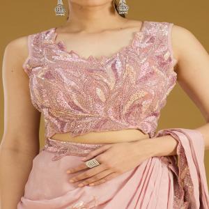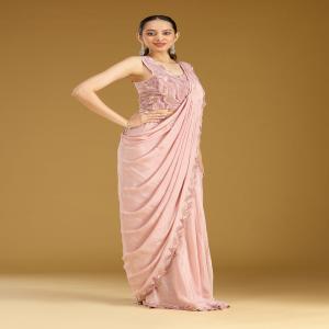 Onion Pink Saree in Satin fabric. The Saree is elevated with Sequins embroidery. It comes with an Unstitched blouse. Comes with the Koskii promise of premium quality.