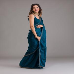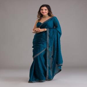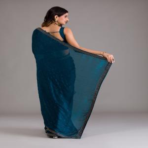 Dazzle in the dynamic teal hues of the Koskii Semi Crepe Saree, a masterpiece adorned with silver stonework that sparkles with every step. Crafted from luxuriously soft semi crepe, this saree is a blend of tradition and contemporary charm, making it perfect for any celebration where you want to shine. Let your spirit dance in the vibrant, playful folds of Koskii, where style meets elegance effortlessly!.