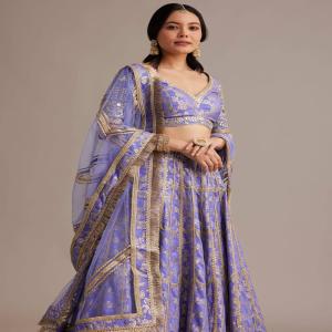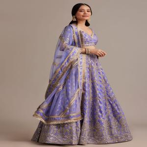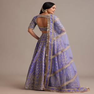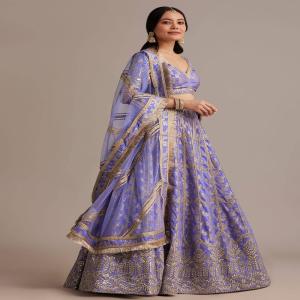 Blue Hand Embroidered Choli With Bandhani Print Lehenga And Choker Net Dupatta