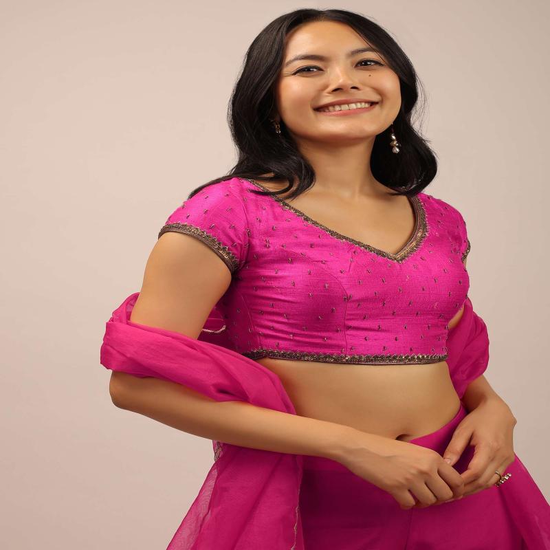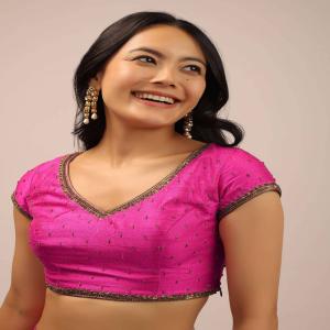 Pink Blouse In Raw Silk With Cap Sleeves And Cut Dana Embroidery