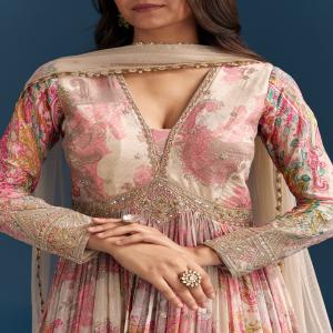 Pink Embellished Chinon Anarkali Set
