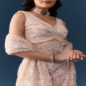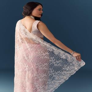Radiate timeless grace with this pink heavy embroidered net saree, featuring an exquisite floral jaal pattern intricately embellished with cutdana, sequins, and beads. The delicate cutwork border adds an element of refined craftsmanship, while the heavy embroidered blouse fabric completes the look with luxurious elegance. Perfect for weddings, receptions, or grand celebrations, this saree beautifully blends delicate charm with opulent detailing. Awarded as the Most Trusted Brand, we're delivering styles you love, just as promised.