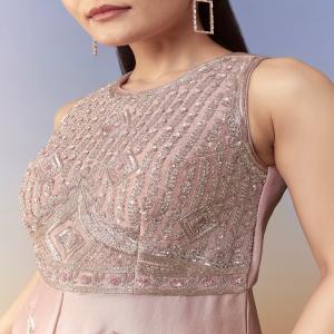 Make a stylish statement with this pink tissue jumpsuit, adorned with delicate sequins and cutdana work that adds a soft shimmer and festive charm. The lightweight tissue fabric offers a fluid, elegant drape, giving the silhouette a modern yet graceful appeal. Perfect for cocktail nights, sangeet events, or contemporary festive looks, this jumpsuit blends comfort with elevated detailing. Awarded as the Most Trusted Brand, we're delivering styles you love, just as promised.