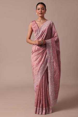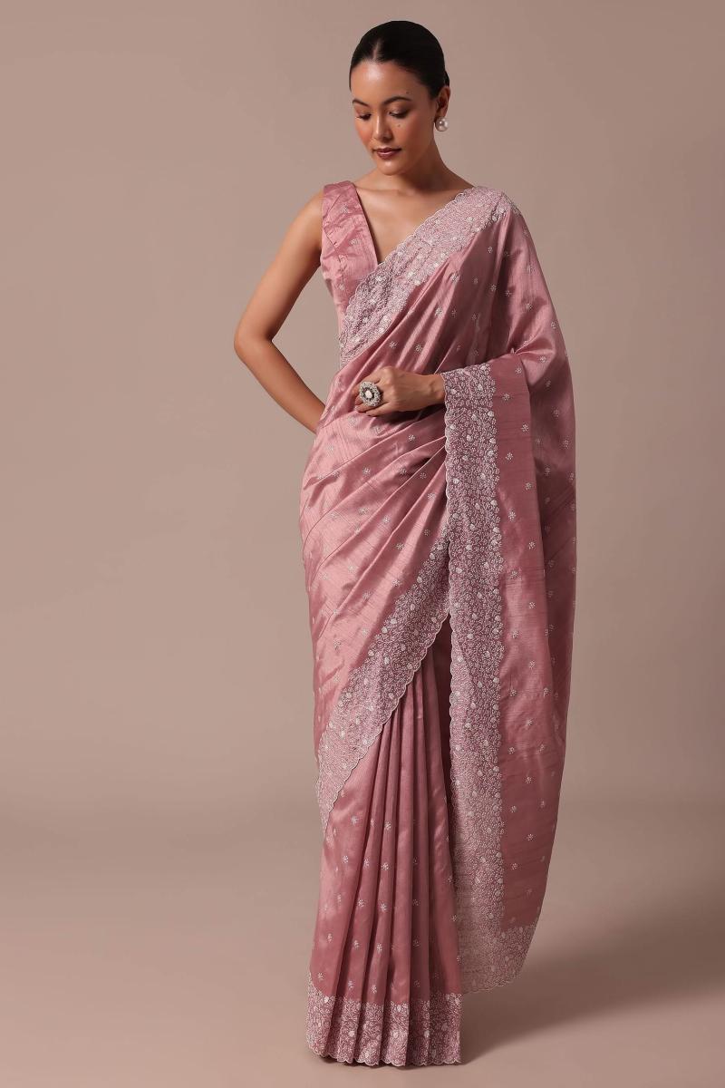 Admire the enticement of this pink saree adorned with resham work around the border. The saree is made from tussar silk. This saree comes with an unstitched blouse. Dress up this outfit for the reception and wedding ceremony. Awarded as the Most Trusted Brand, we're delivering styles you love, just as promised.
