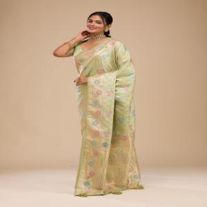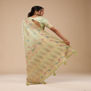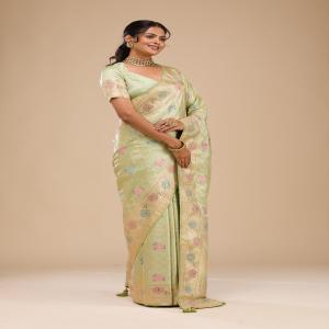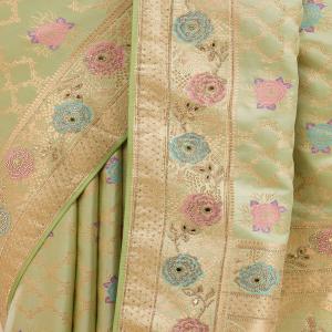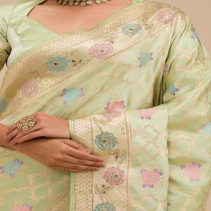 Pista Green Stonework Soft Silk Saree