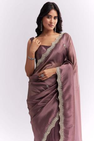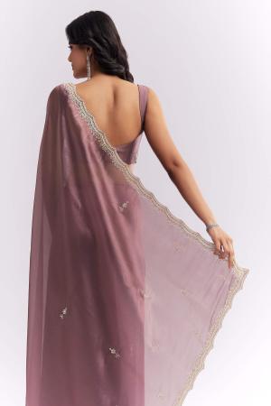 Purple Silk Organza Saree With Heavy Hand Embroidery