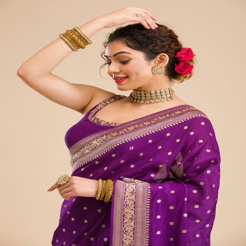 Purple Zariwork Banarasi Silk Saree