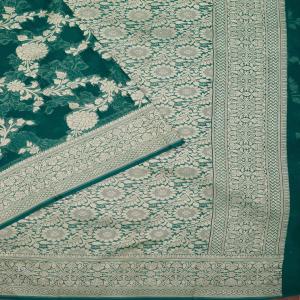 Rama Green Silk_Saree in Georgette fabric. The Silk_Saree is elevated with Zariwork embroidery. It comes with an Unstitched blouse. Comes with the Koskii promise of premium quality.
