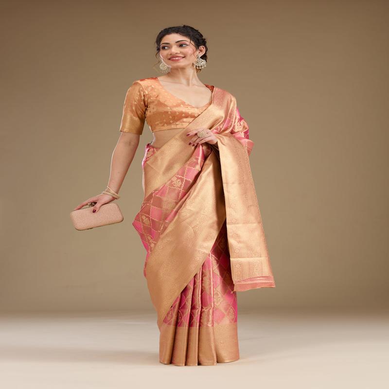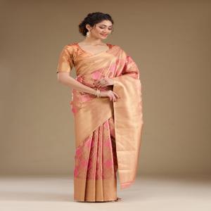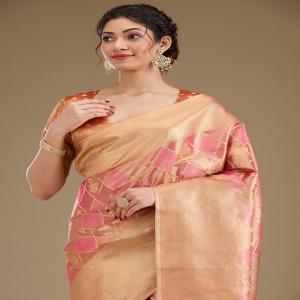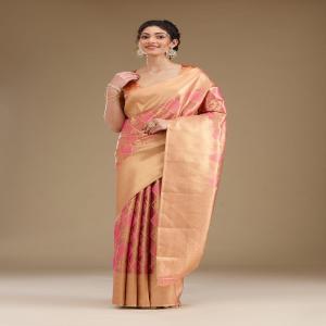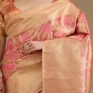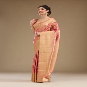 Rani Pink Saree in Tissue fabric The Saree is elevated with Prints It comes with an Unstitched blouse Comes with the Koskii promise of premium quality.