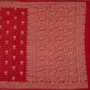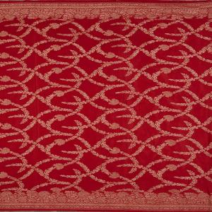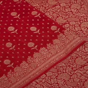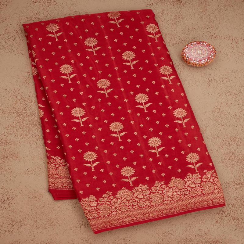 Red Saree in Pure Silk fabric. The Saree is elevated with Zariwork embroidery. It comes with an Unstitched blouse. Comes with the Koskii promise of premium quality.