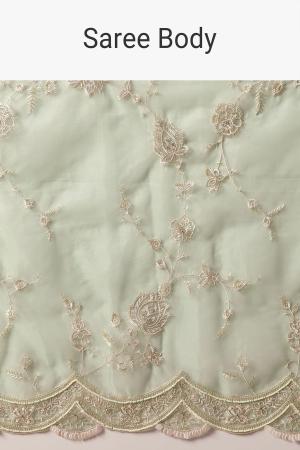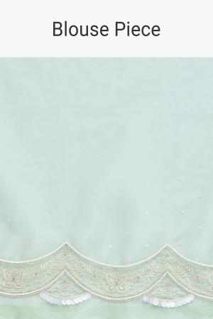 Sea Green Chikankari Saree In Organza Silk With Sequin Scallop Border And Unstitched Blouse Fabric