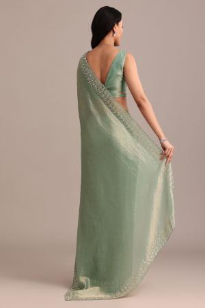 Sea Green Tissue Saree With Cutdana And Stone Embroidery