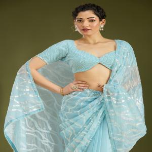 Sky Blue Sequins Tissue Saree
