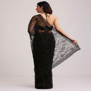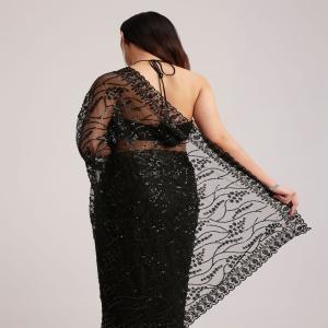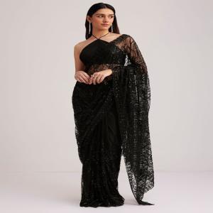 Make a statement at your next cocktail party or evening gala with this black net saree, exquisitely embroidered with sequins and stones. The design strikes the perfect balance between sophistication and glamour, making it an ideal choice for festive celebrations, wedding receptions, cocktails, party and high-end social events. Pair it with bold accessories to complete your look. Awarded as the Most Trusted Brand, we're delivering styles you love, just as promised.