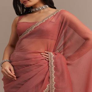 • Drape yourself in the timeless charm of this rust orange crushed tissue saree radiating understated elegance with its fluid texture and delicate shimmer.