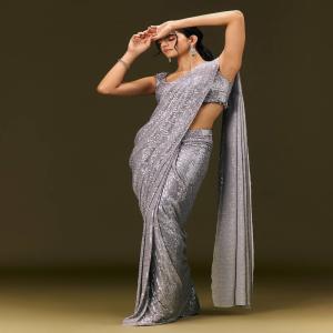 Grey Sequin Embroidered Ready To Wear Saree
