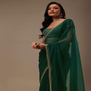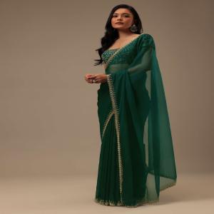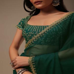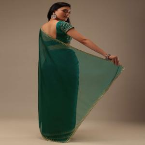 Introducing our enchanting teal green plain organza saree, a celebration of simplicity and opulent detailing. This saree showcases a cutdana border that adds a touch of elegance. The unstitched blouse fabric features heavy cutdana work all over. EVENT - Perfect for evening parties. The saree comes with a matching unstitched blouse. Opt for a timeless hairstyle like a bun or sleek waves. Awarded as the Most Trusted Brand, we're delivering styles you love, just as promised.