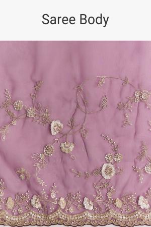 Violet Organza Saree With All Over Embroidered Floral Jaal