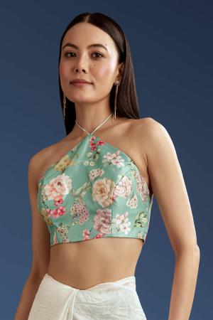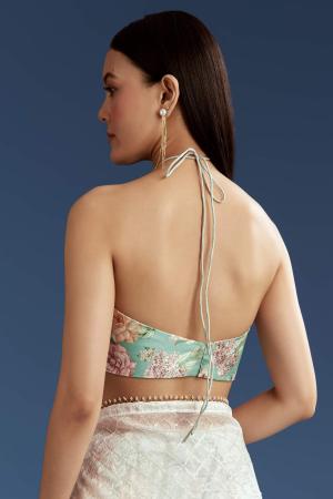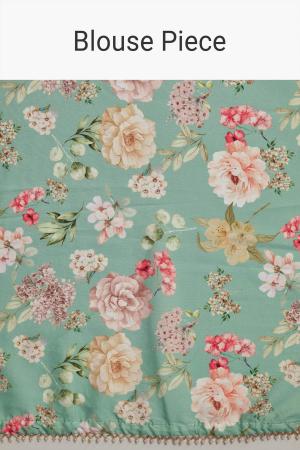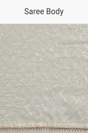 A white green glass tissue saree featuring sequins embroidery, cutdana and bead border with contrast blouse, perfect for weddings. It feels like wearing a quiet poem stitched in shimmer and tradition. Awarded as the Most Trusted Brand, we're delivering styles you love, just as promised.