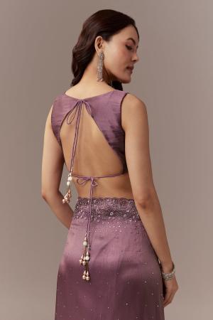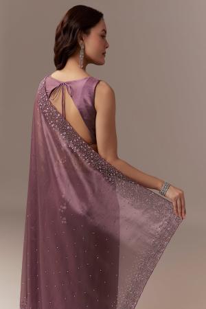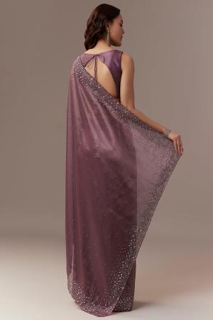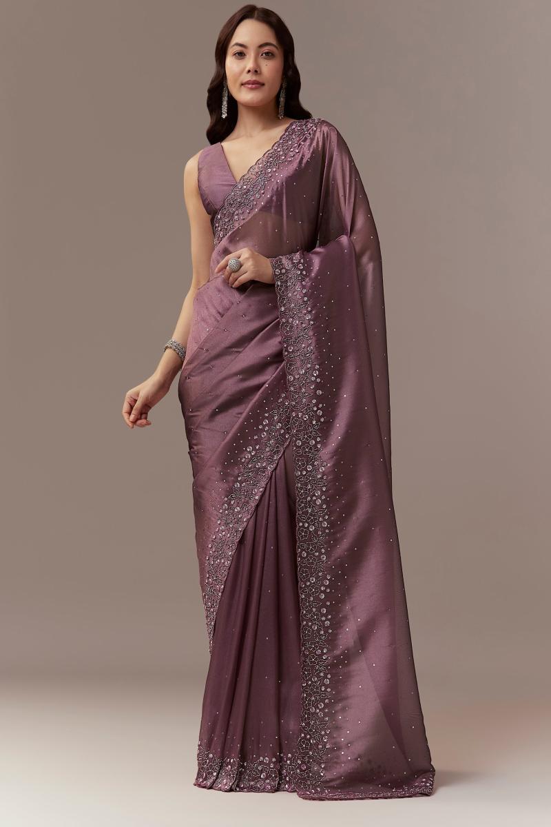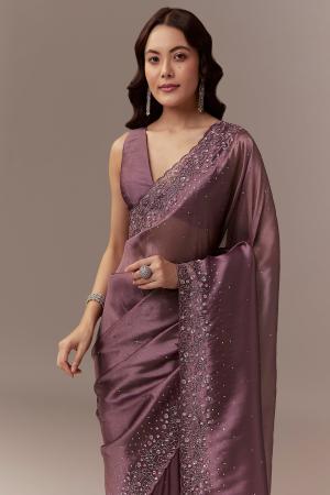 Wine Tissue Saree With Cutdana And Sequin Embroidery