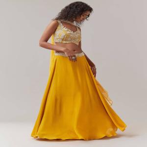 Yellow Embroidered Chinon Silk Lehenga Set