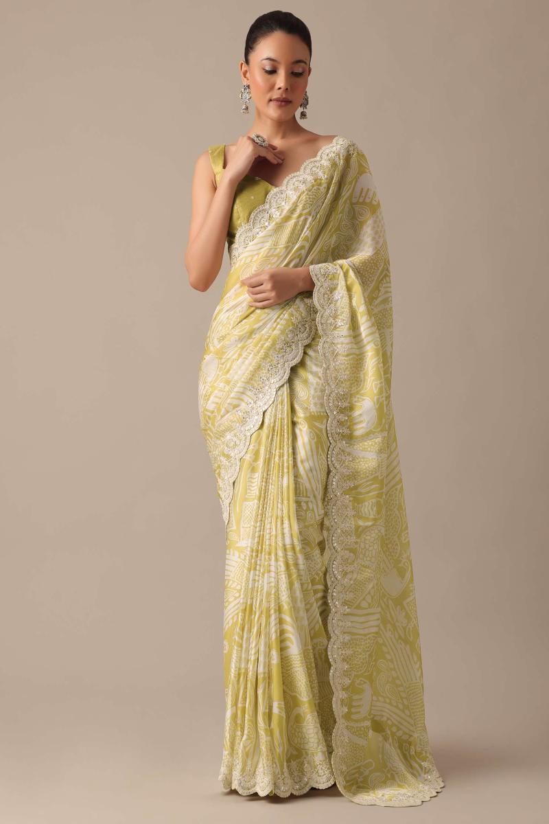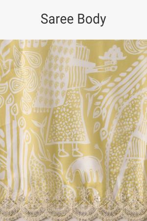 Lend an alluring charm by donning this printed saree at the next festive get-together. Fabricated using high-quality satin fabric, it is adorned with captivating motifs. Accentuated with shimmery sequins and thread embroidery on a yellow base, this saree comes paired with an unstitched blouse piece. Awarded as the Most Trusted Brand, we're delivering styles you love, just as promised.