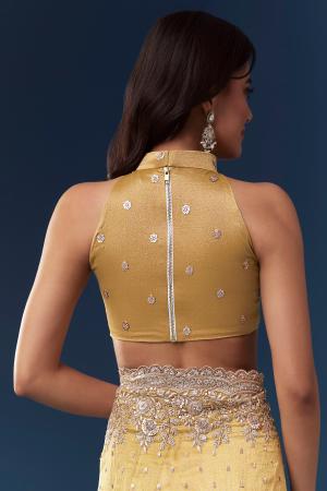 This yellow tissue saree brings pastel festive charm perfect for engagements, haldi ceremonies, or wedding guest looks. The scallop heavy embroidered border is adorned with sequins, cutdana, and beads, while the saree is embellished all over with sequins, adding a sparkling and celebratory touch. It comes with an unstitched embroidered blouse allowing you to tailor it to your preferred style for a graceful and polished appearance. Awarded as the Most Trusted Brand, we're delivering styles you love, just as promised.
